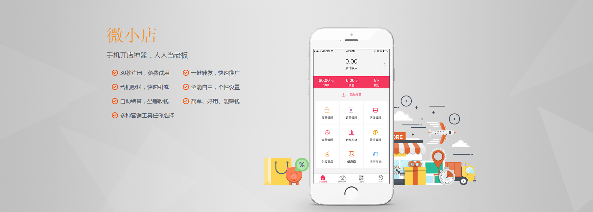 0元無門檻開店、一鍵上架、玩轉(zhuǎn)微營銷、實現(xiàn)創(chuàng)業(yè)夢!