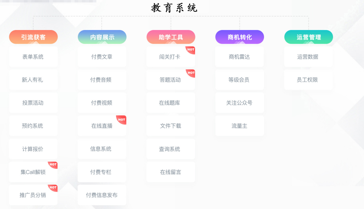 為助力教培機(jī)構(gòu)擴(kuò)大渠道,盡可能挖掘更多潛在客戶,做好客戶留存和轉(zhuǎn)化,推出新產(chǎn)品——教育系統(tǒng)。